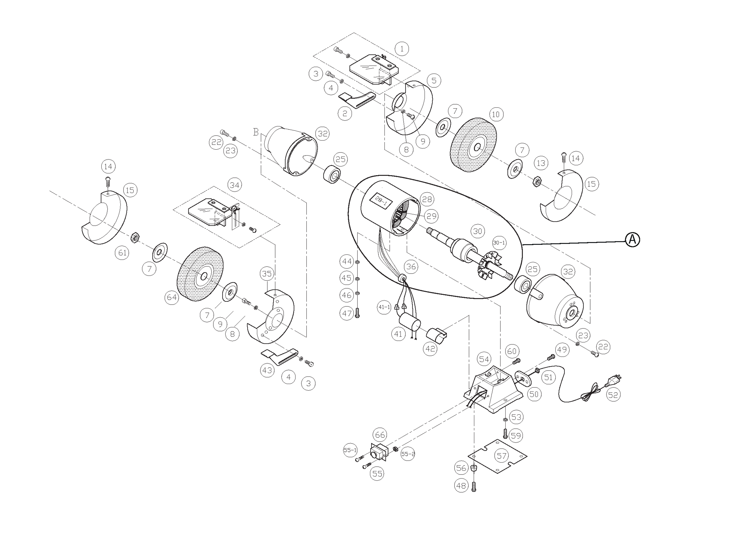 Touret à meuler, moteur monté sur roulements à billes. Interrupteur avec bobine anti-redémarrage Porte outil réglable Interrupteur coup de poing Livré avec : Plexis de protection, Meule 150x25 Grain 36, Meule 150x25 Grain 60, son manuel d’utilisation et ses clés de services.